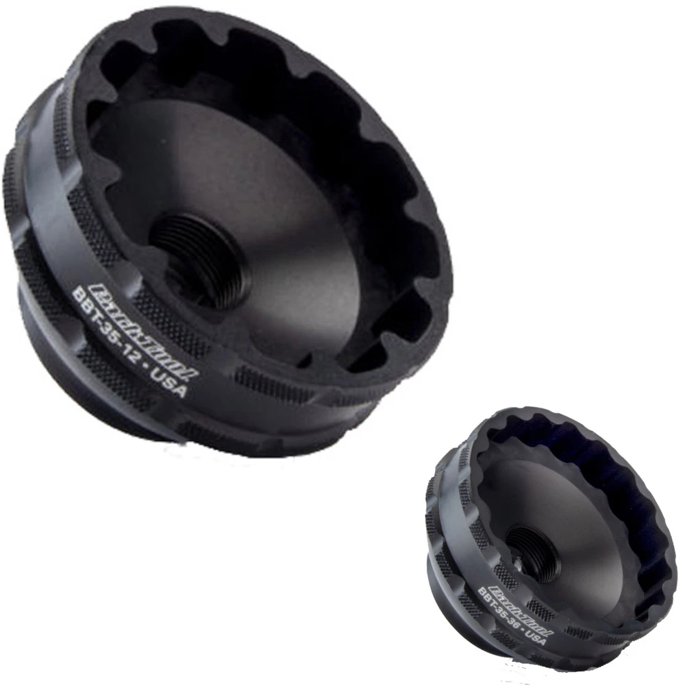 Le BBT-35 de Park Tool est un outil de précision en aluminium fraisé CNC pour le montage et le démontage des boîtes de pédalier filetées à 12 ou 36 encoches.
