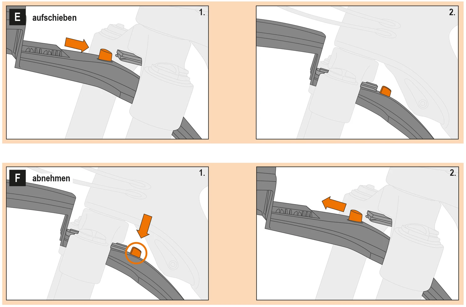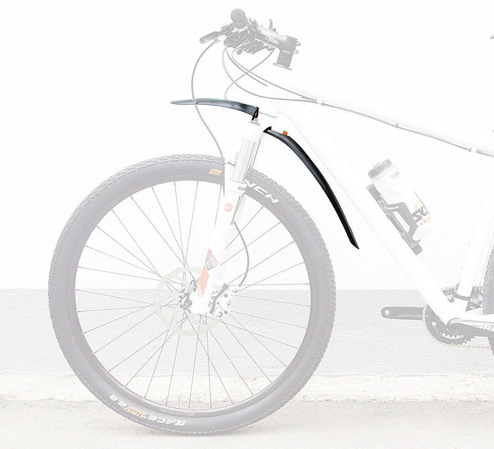 Le montage rapide est une caractéristique particulière : Après avoir vissé un adaptateur dans le tube de direction lors du premier montage, le garde-boue avant peut être mis en place et détaché du vélo par simple pression sur un bouton. Le système de cônes amélioré 2.0 couvre un diamètre allant jusqu’à 39 mm (1,8 pouces). La livraison comprend deux adaptateurs de cônes de 19 à 39 mm. Des adaptateurs pour fourches rigides sont disponibles en option.